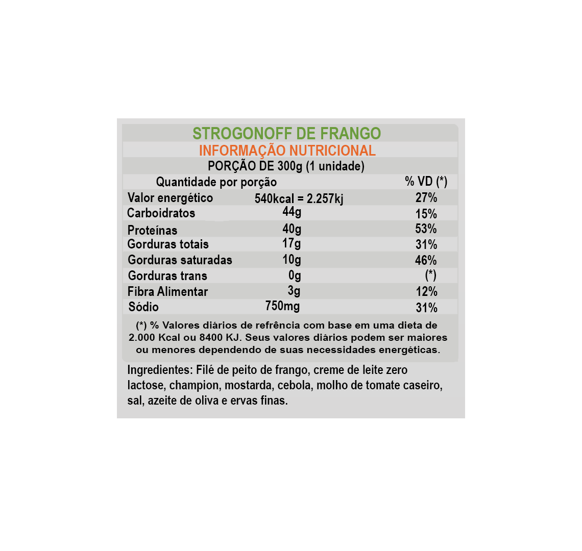 STROGONOFF DE FRANGO ZERO LACTOSE